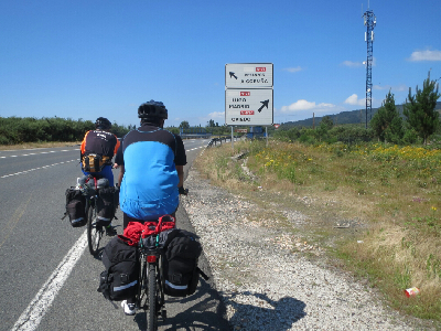 The road to Pola de Allande rises and falls several hundred meters at a time so we had a day of serious mountain climbing enroute to Beducedo. Fantastic scenery especially at Grandas de Salime where the river forms a gorge and the Spanish have built a hydroelectric dam. The drop to the dam was 600m vertically at an 8% gradient and although it was not steep on the other side we still had 15km of constant climbing to our overnight stop at Berducedo. Very little accomodation in the town and the landlady at Casa Rural took pity on us when she realised we were her only option apart from another long ride to Pola de Allande and setup a room specially for us. Fried egg and chips at the local taverna tasted great after such a hard day - 75km of mountain roads.